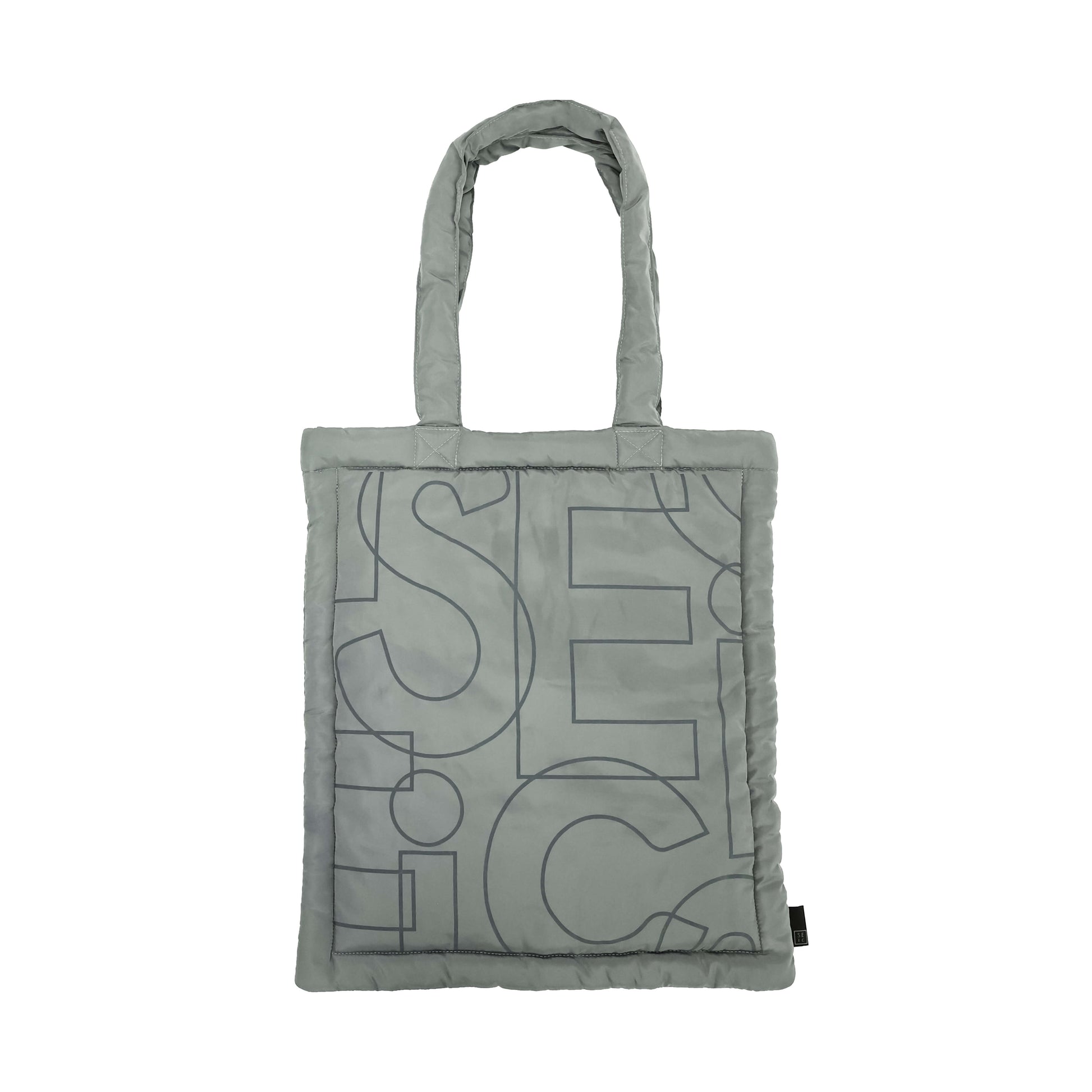 手提包以蓬鬆立體的包型結合柔軟觸感,呈現出獨特的輕盈質地,有別於市面常見包款。以 SEic Logo 為設計靈感,透過解構與錯視手法重新演繹品牌識別,打造出兼具時尚與玩味的造型語言,展現自由、不受框架限制的品牌精神。