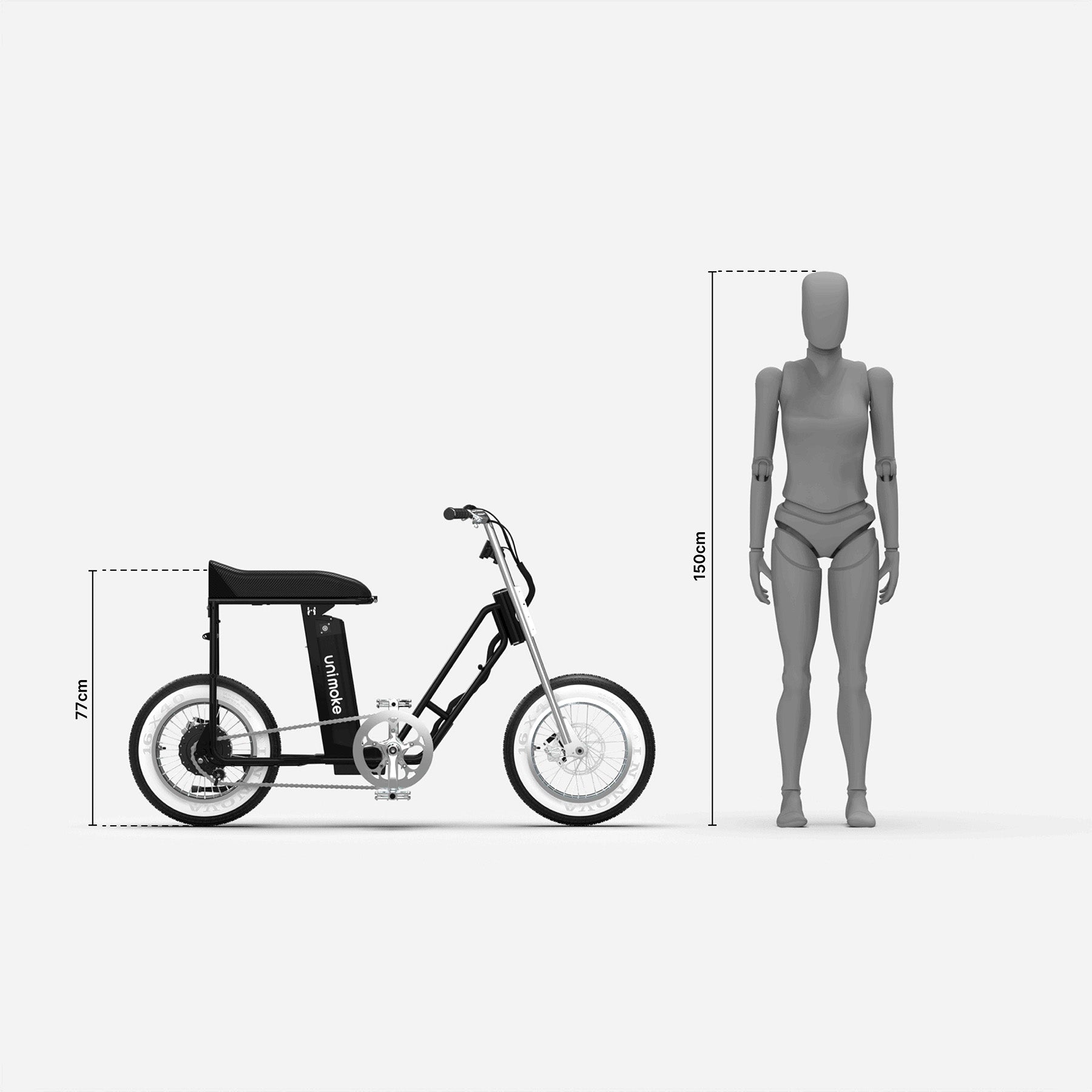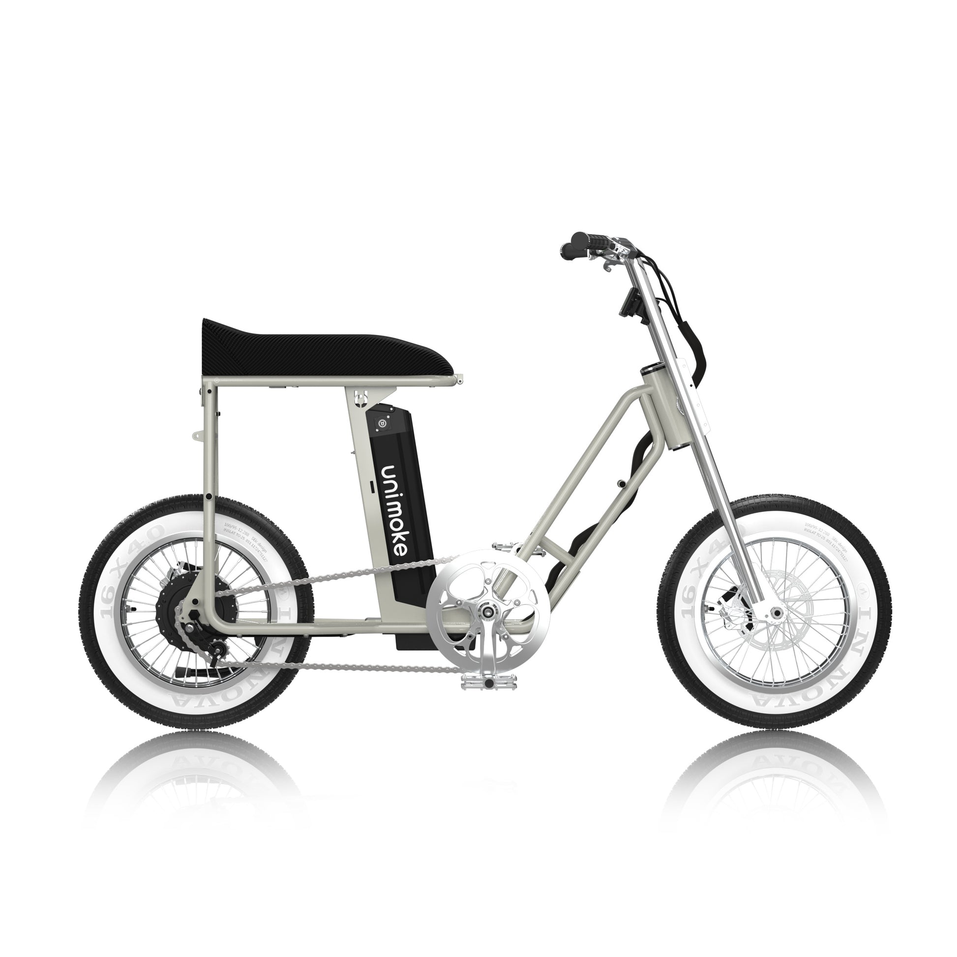 Unimoke miniswing 珍珠黑以低跨點設計結合 16 吋小輪徑與 4.0 胖胎,讓上下車更安全便利。Panasonic 48V 電池搭配高扭矩後輪電機與 9 段助力,無論是日常通勤、親子共騎或週末探索,都能展現穩定性能與獨特風格,被視為新世代騎士的潮流胖胎電動腳踏車。